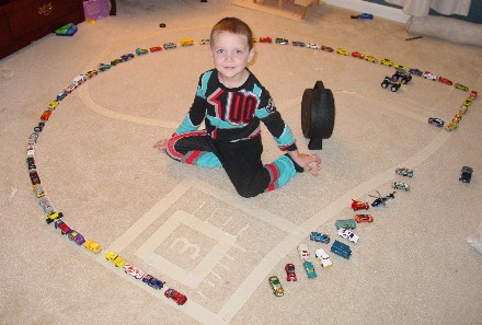I woke up to this traffic jam!! Adam sure loves his cars.