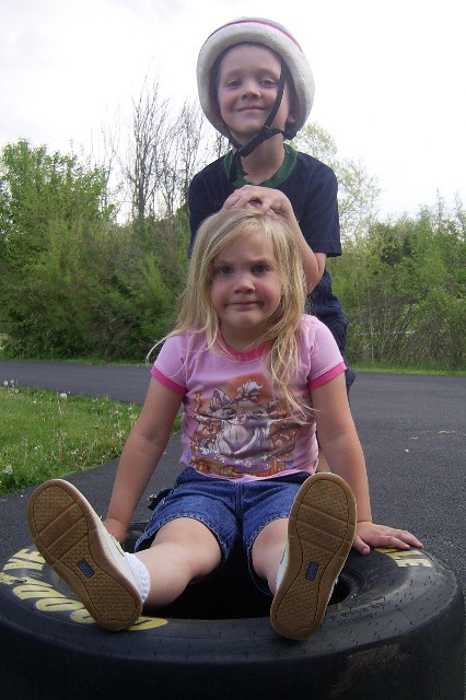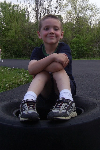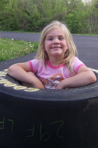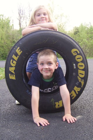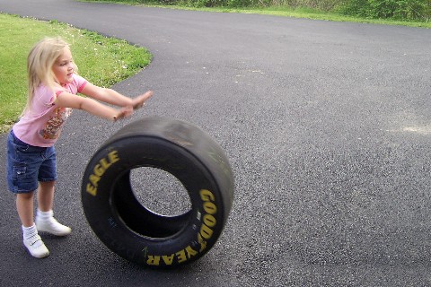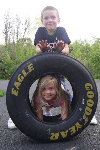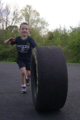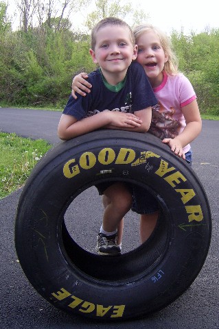 A friend, Ron, gave us this cool tire from a racecar! It was fun to play with! Thanks, Ron! |