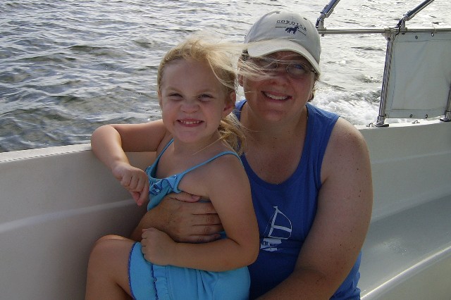 Sarah and Mommy enjoying the boat ride |