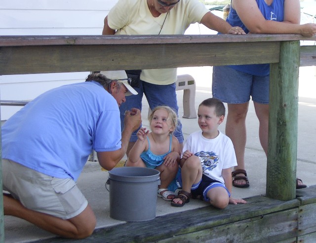 Capt Beau and the kids feeding the snook. |