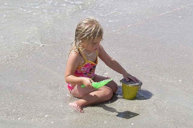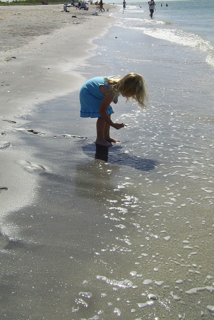 Sarah searching for shells and treasures |