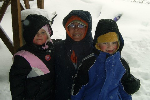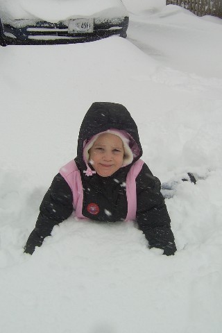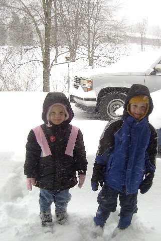 The snow started falling Friday morning and by Saturday afternoon there was 14 inches! The wind 20-30 mph winds were drifting the snow into drifts 2 feet high in some places! Let's hope Spring gets here fast! In the meantime, the kids and the dog (Jake) really enjoyed playing out in the snow. Some places, the snow was past Adam and Sarah's knees! |