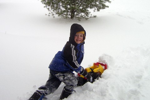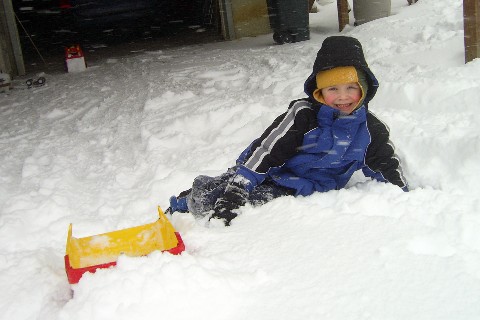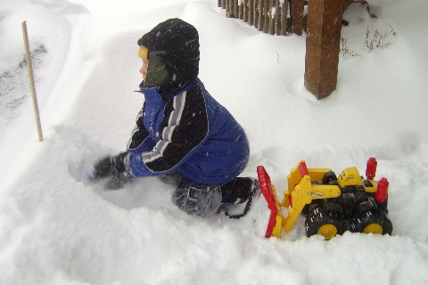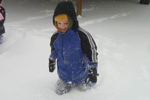 Here, Adam is trying to walk in the 14 inches of snow