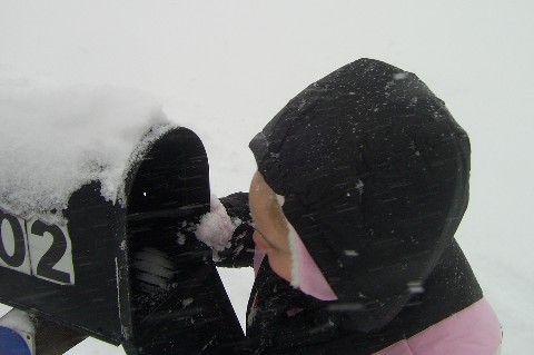 Sarah wants to know where the mail is and Adam is busy digging out the yard stick in a 19" drift.