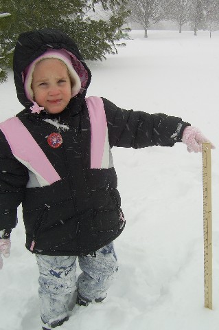 Snowy Sarah measuring the snow...13 inches!