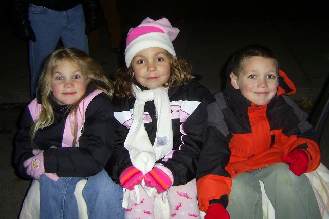 Sarah, Erica, and Adam watching the parade.