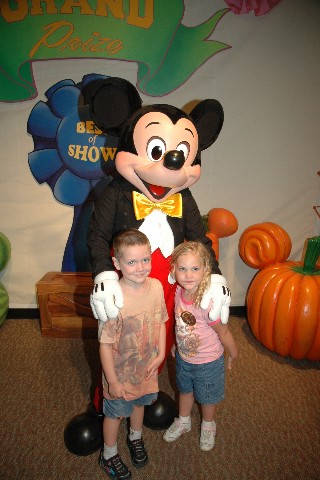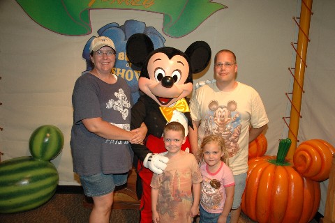 We finally got to meet Mickey and Minnie. It was very late in the day. We are all a little hot, sweaty and tired. But still having fun! |