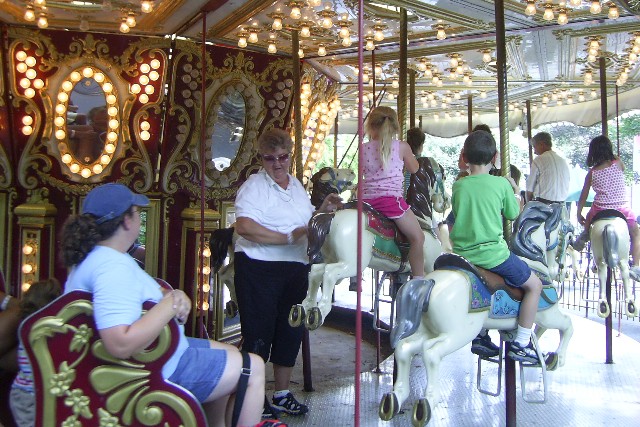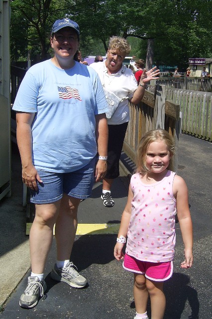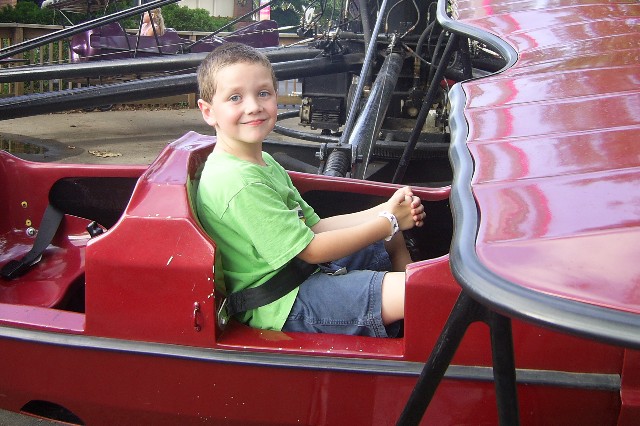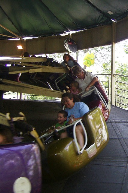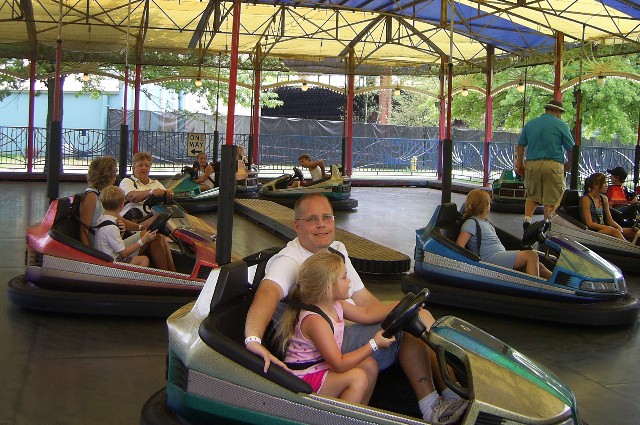 Nana, Daddy and Sarah in the bumper cars. Mommy sat this one out.