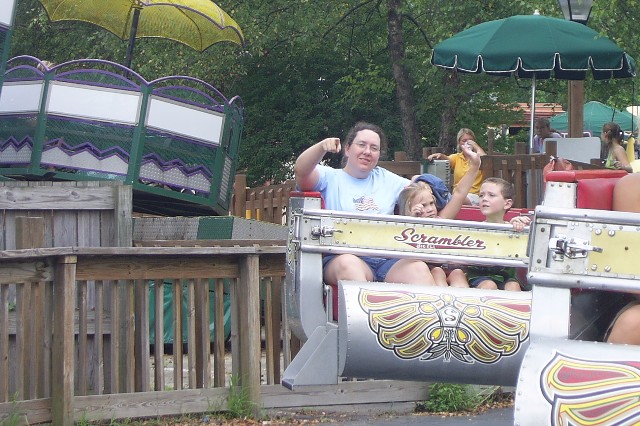The Scrambler. Nana and Daddy opted out of this ride. Maybe Mommy should have too!
