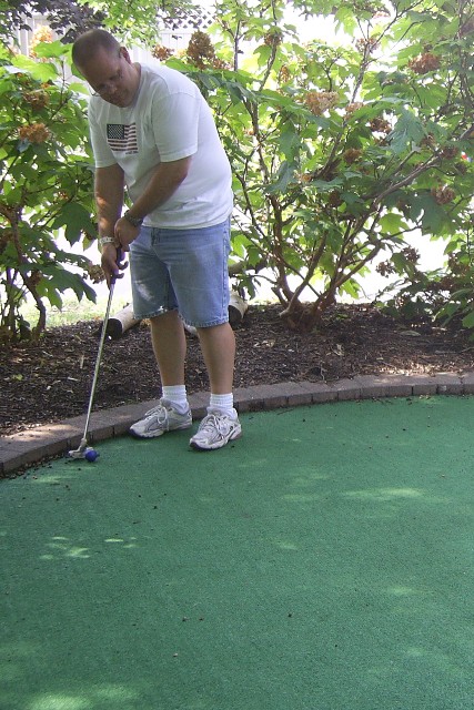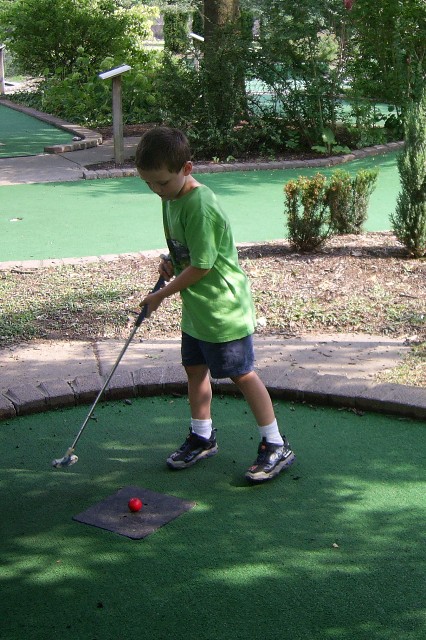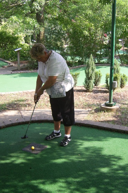 Nana with good form. Sarah went on more rides while the other played golf.
