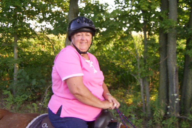 Mom started off riding Lady. Then we played musical horses midway on the trail.