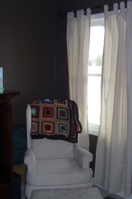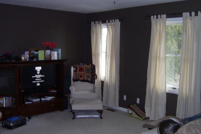 The living room painted brown. It is a lot darker in real life. Almost the color of hersey's chocolate