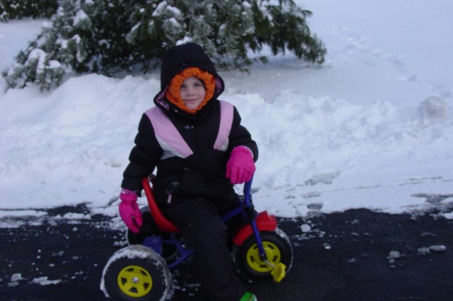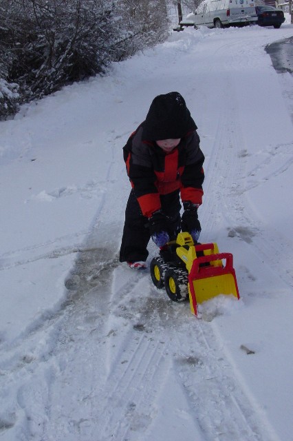 | Adam hasn't changed much...he always plays with his trucks in the snow. |