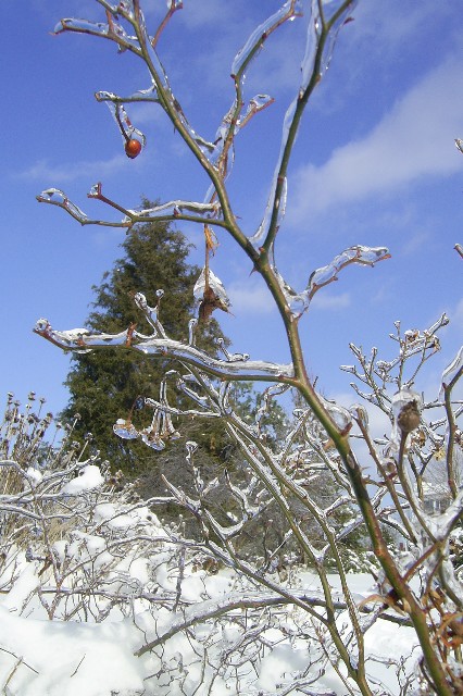 | Here are some nature photos. Overall, we got about 3 inches of snow on top of 1/2 inch of ice, on top of 3 inches of snow. Kind of like a layer cake! |