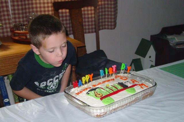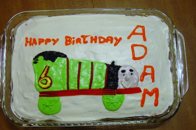 He wanted a cake with "Percy" on it from "Thomas the Train". Nana helped decorate the cake. It turned out great.