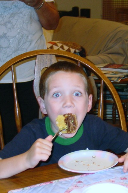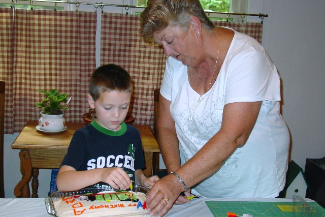 Nana helping Adam put on the Birthday Candles