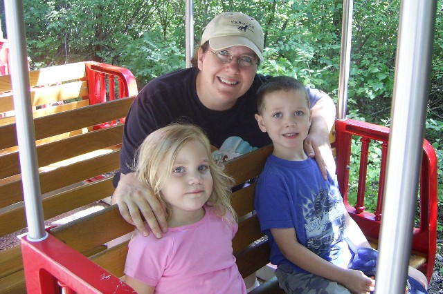 Sarah, Mom, and Adam on the train ride.