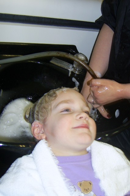 Sarah enjoyed having her hair washed and conditioned!