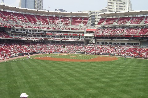 Adam had a good time at the game. The Red's lost to the Pirates 14-10, so at least we saw alot of runs being scored. The Reds hit 4 home runs, one made it out our way it was about 20 rows over so no souvenir ball for us. |