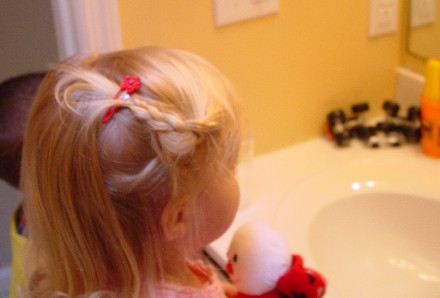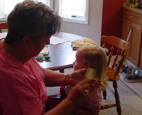 Nana doing Sarah's hair. Why won't she sit like that for Mama?