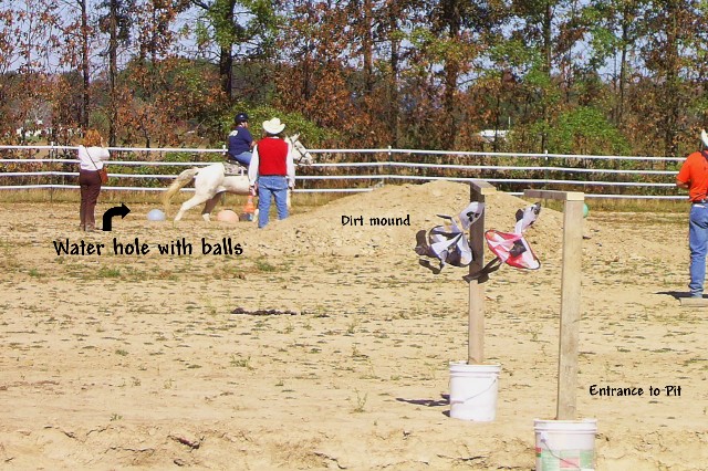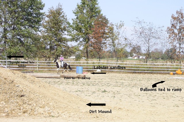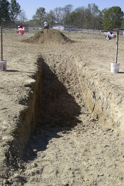 The "Pit". About 4 feet deep. Had to ride down and then up, then the dirt mound. Was like a horsey rollercoaster!