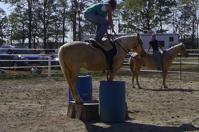Elephant stand. This person stood up on her horse after the competition. Crazy, if you ask me. But during the competition you had to have all 4 feet on it and pause for 1 second.