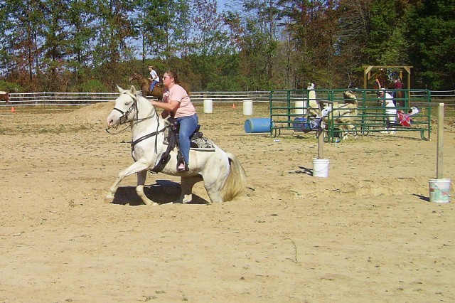 Poles in the shape of a "Z" you had to back thru. This lady was awesome! Did the whole thing bareback