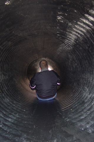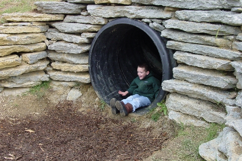 See the hill in the background? It housed a GIANT slide! Here is Todd going down!