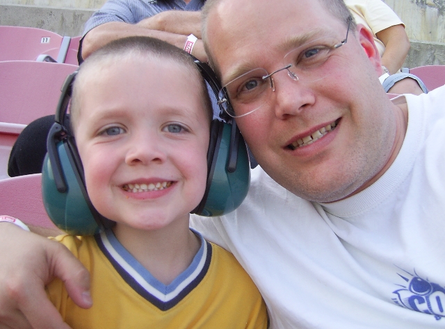 Daddy and Adam went to the Kentucky Speedway to see Adam's first race. He had a great time! And had GREAT seats!