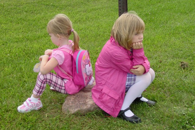 Lauren and Sarah finding out it can be boring waiting for the bus. |