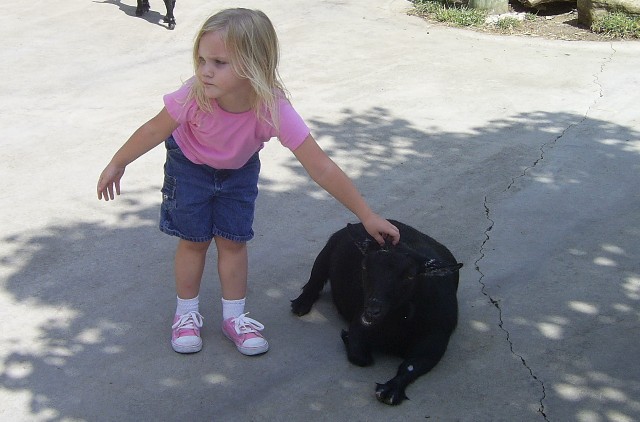 Sarah petting the goats.