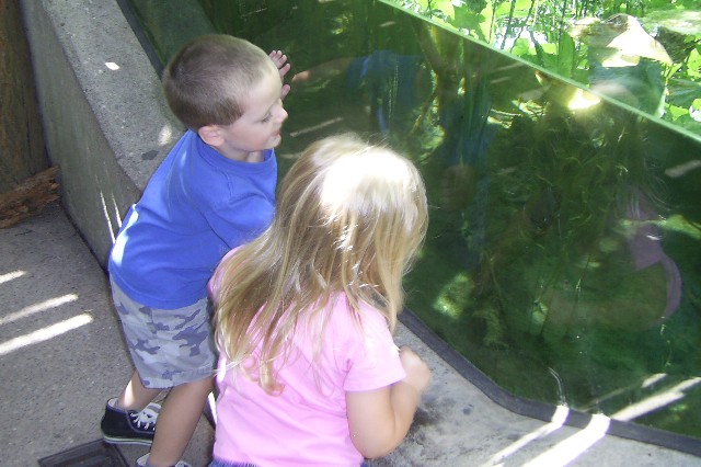 Looking at some fish, blue gill, I think, and some crawfish.