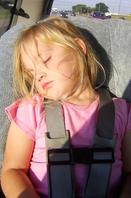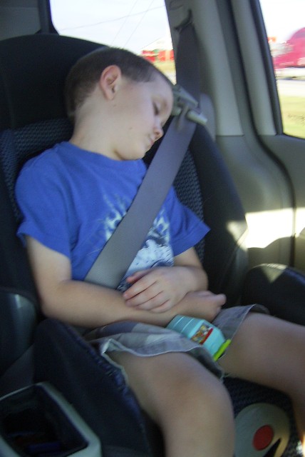 Two tired kids after the zoo.